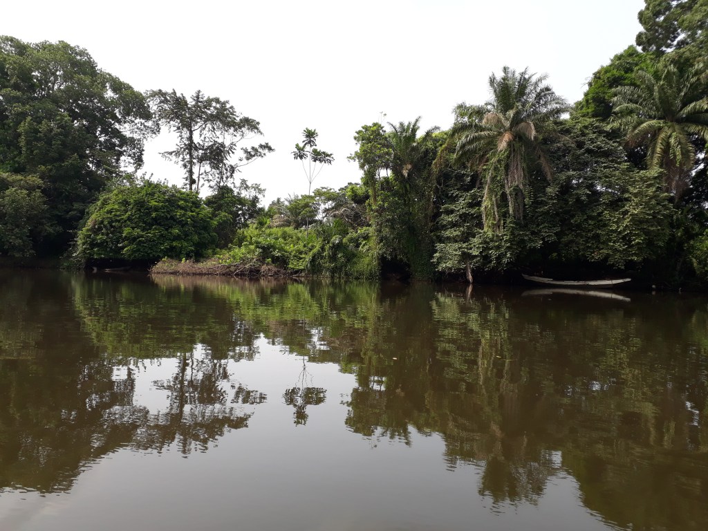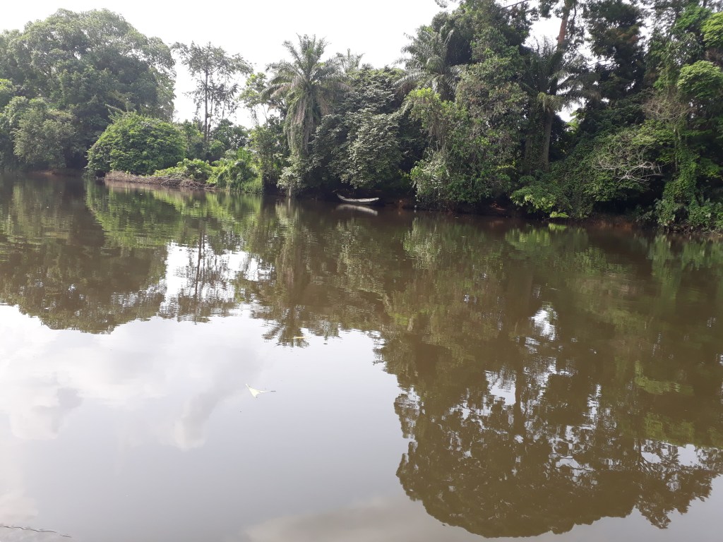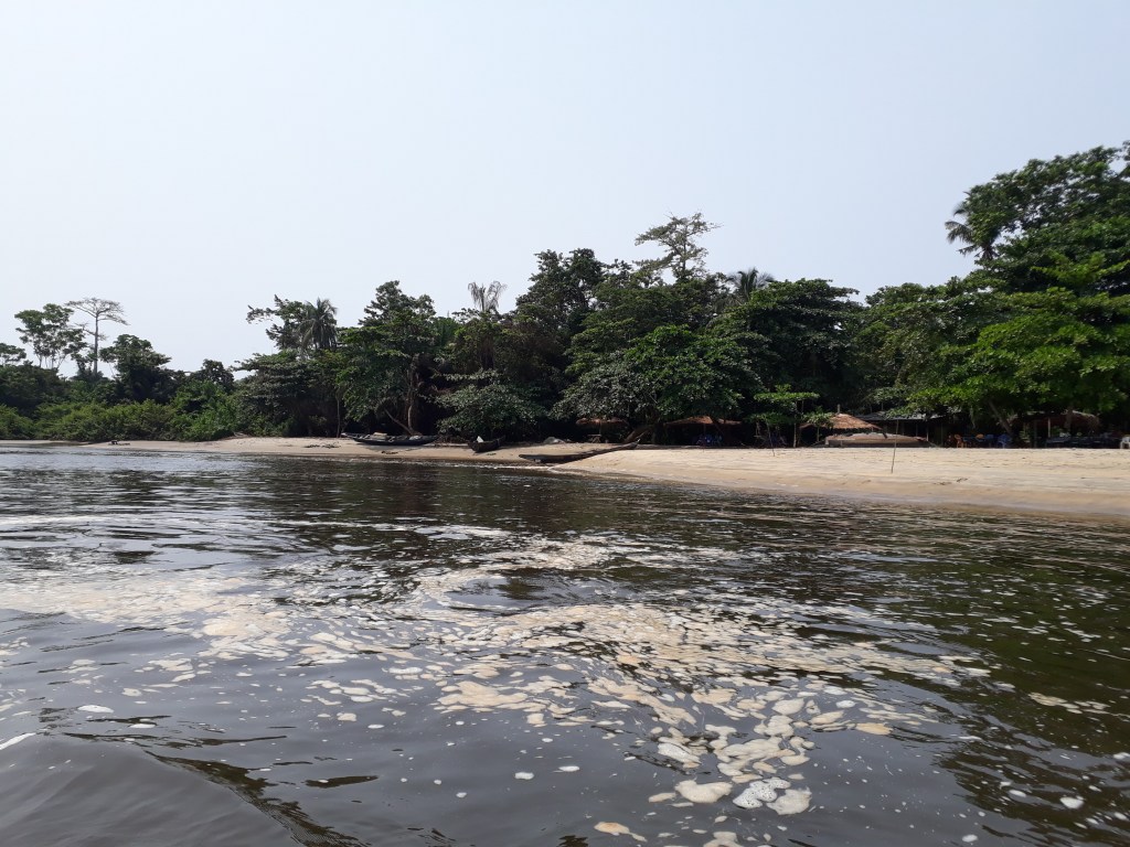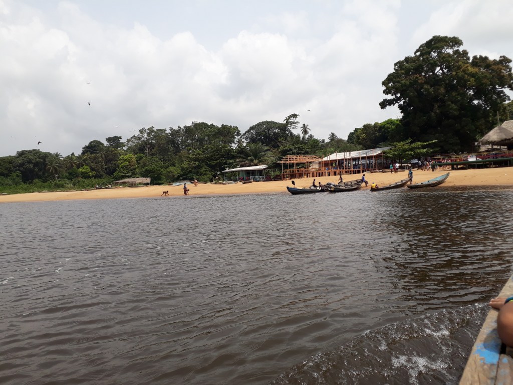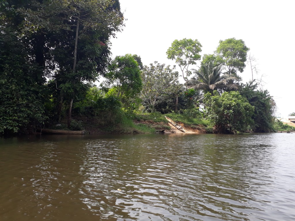 Nous avons pris une pirogue et traversé le fleuve Lobé
