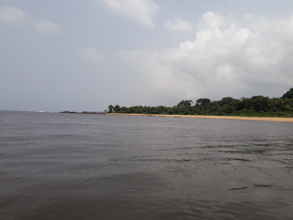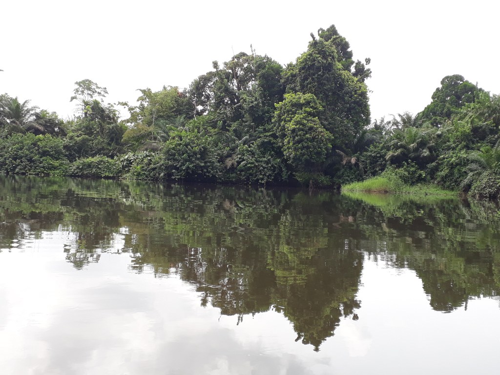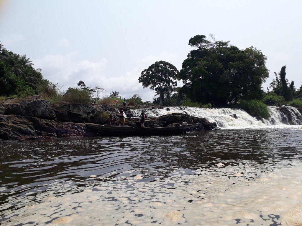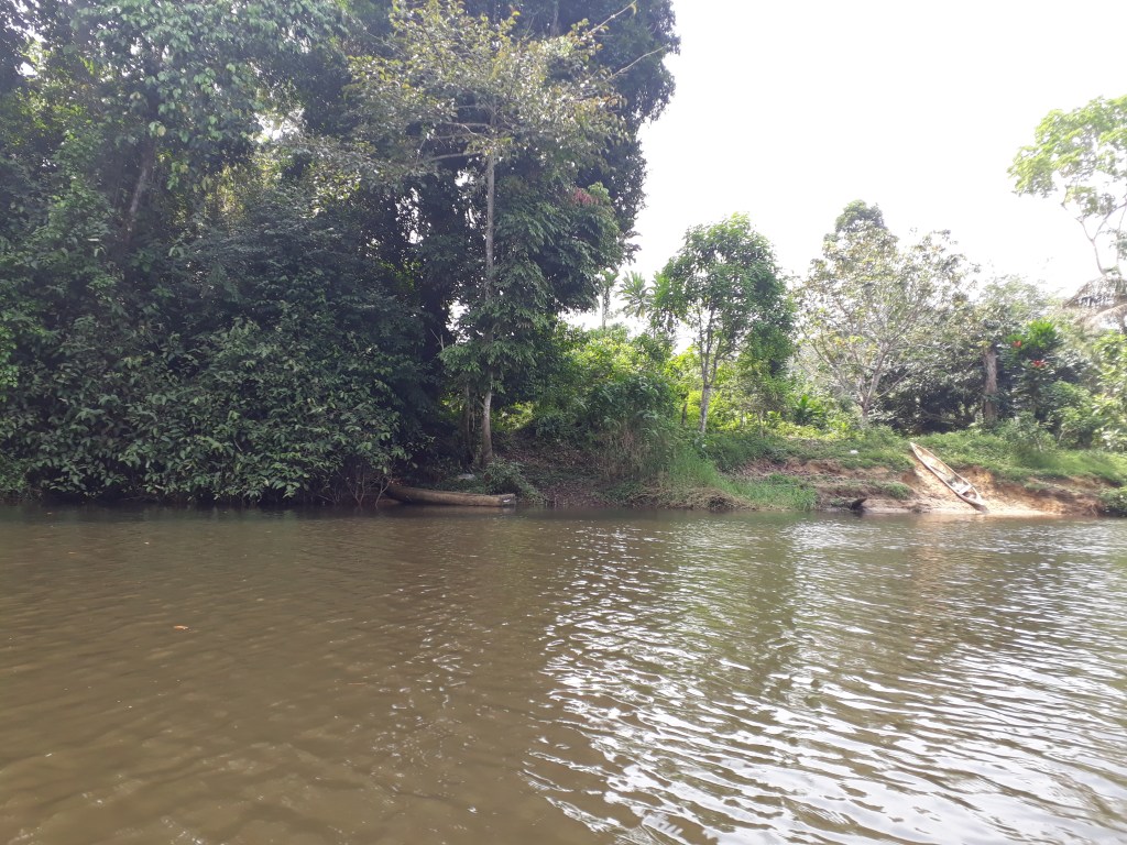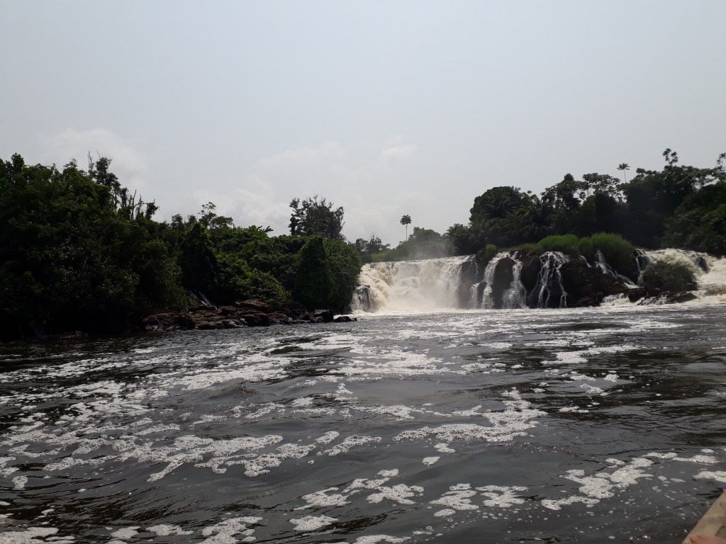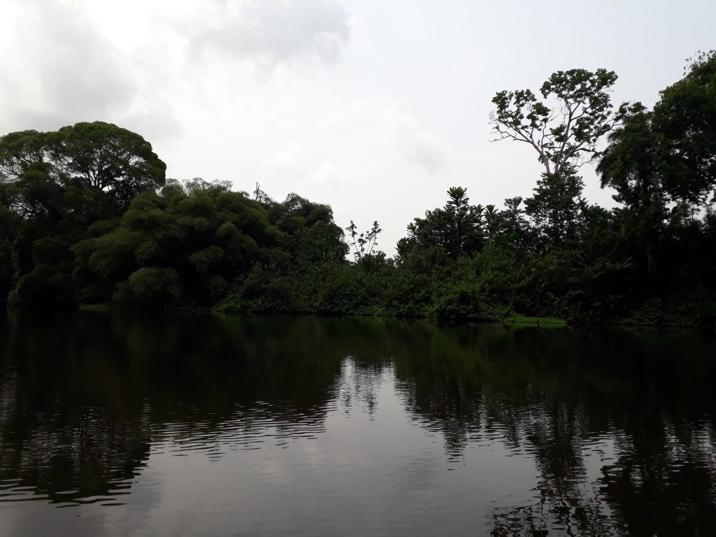Nous avons pris une pirogue et traversé le fleuve Lobé