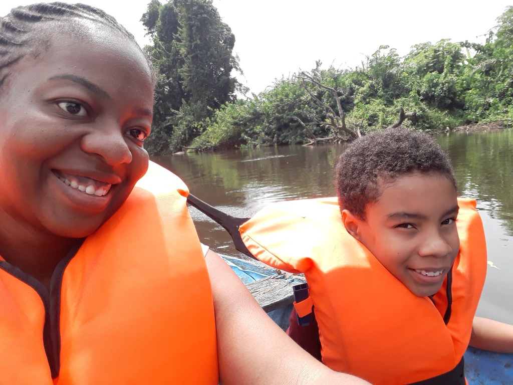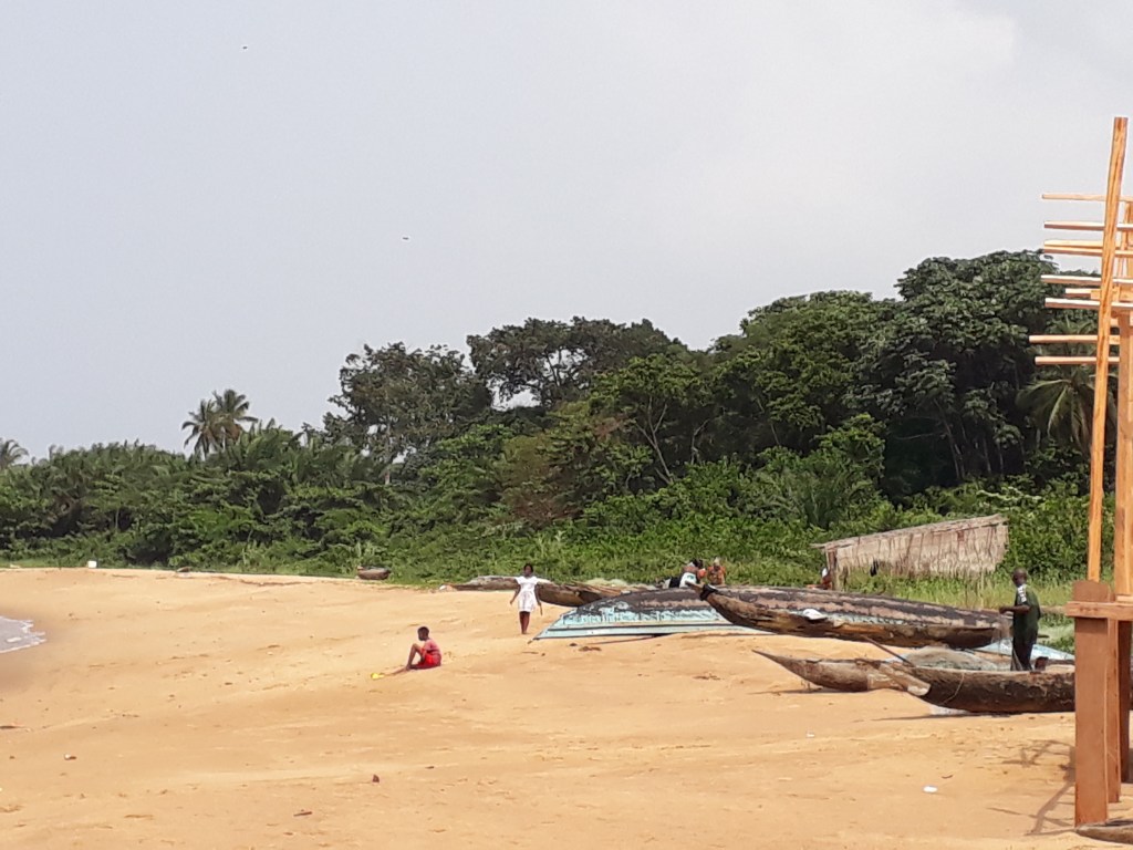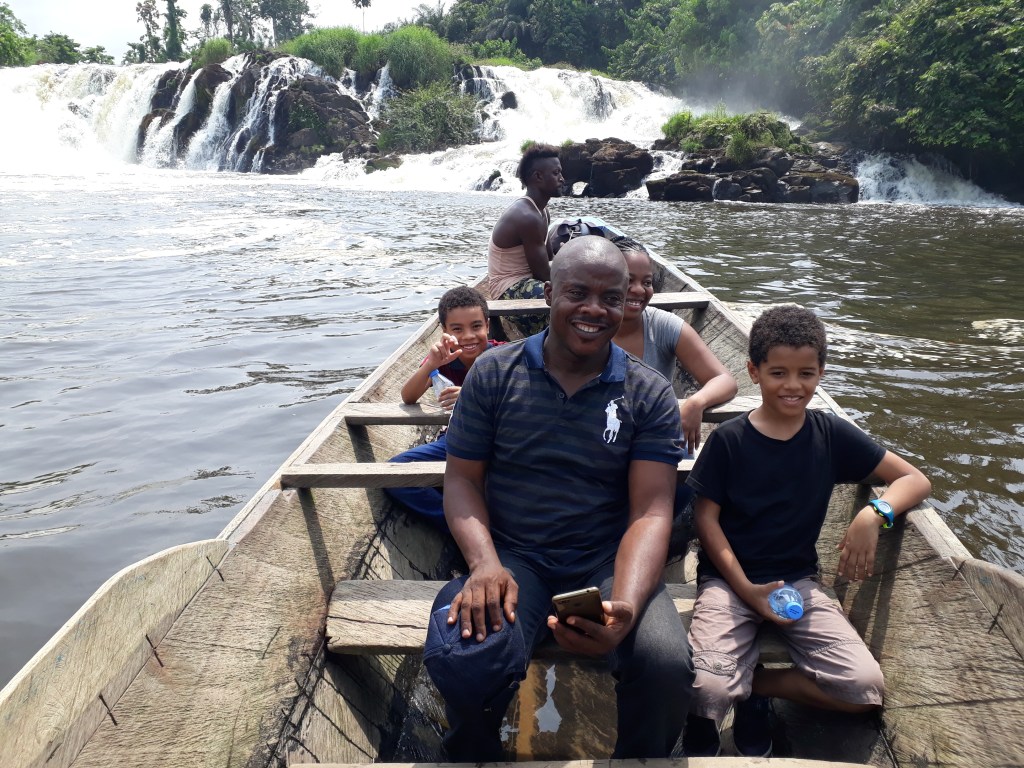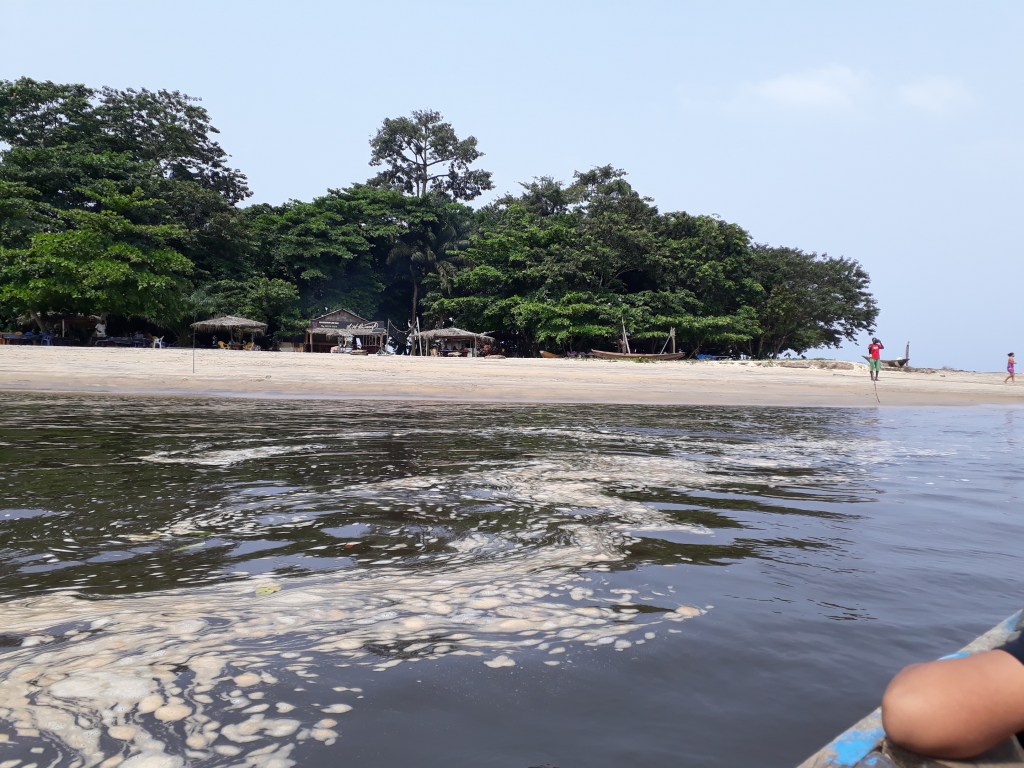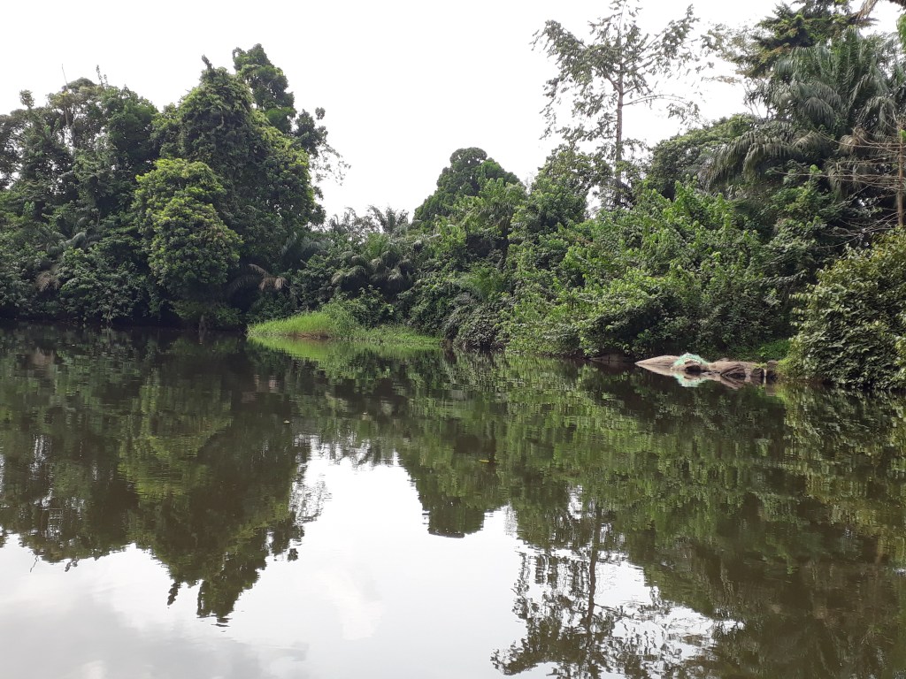 Nous avons pris une pirogue et traversé le fleuve Lobé